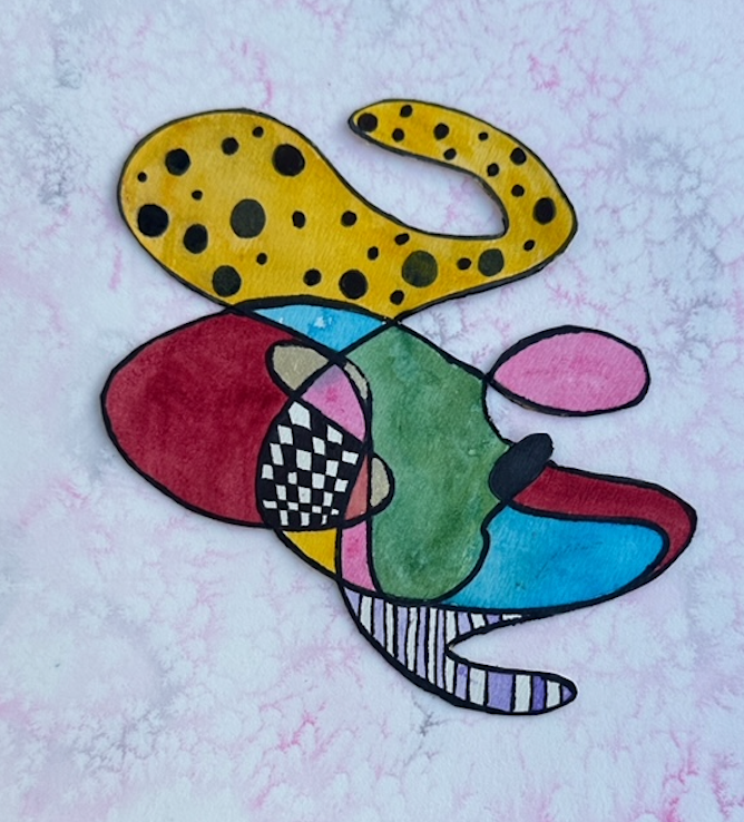 Well, at the Seattle Children’s Hospital, we were there only one day and they placed us in the Cancer Unit. It was there that we taught five children abstract watercolor with gold leaf. We showed the children abstract scribble we had made the night before that we titled “Seattle Blue 1,” and they loved it and we’re excited to make their very own piece of Artwork. We gave each child a piece of 300lb (does not warp), 9” x 12” watercolor paper and let them scribble on it with a black permanent marker. Then we showed them how to dip or load and rinse their brushes with the prepared watercolor that we had mixed for them. Since we had volunteered, this entire trip and volunteering at the hospital was all at our cost and well worth it!