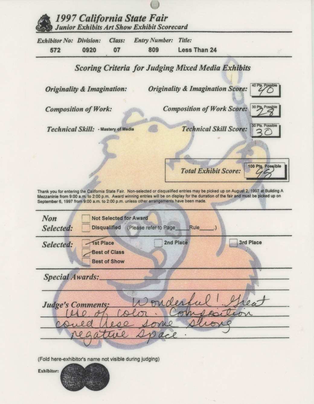 "Less Than 24," 24" x 32" x 2," watercolor and ink, Vanessa 1997 California State Fair