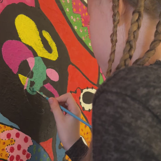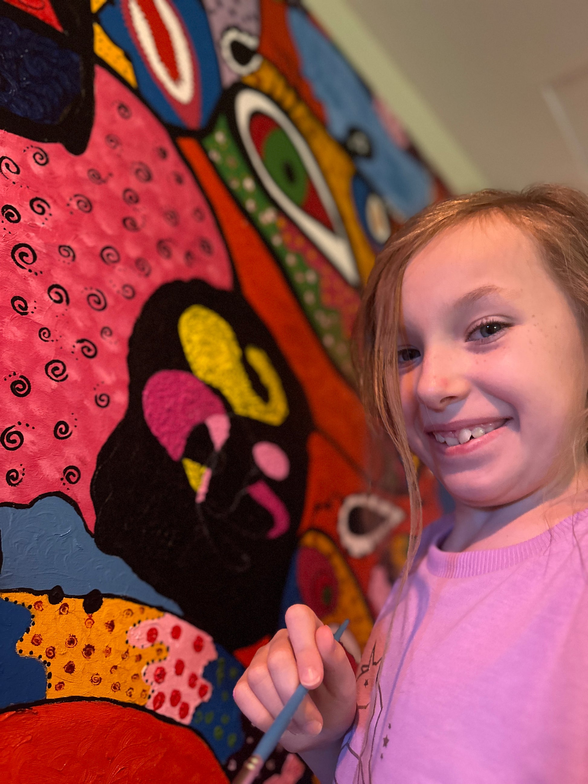 "This is the final piece of our six paintings in our 'Faces of War III' collaboration. It is signed by all three of the World's Only Three Generation Collaborating Art Team. It will also have a Certificate of Authenticity. We would like to personally deliver it to your home or office and meet the beautiful person who bought our artwork."