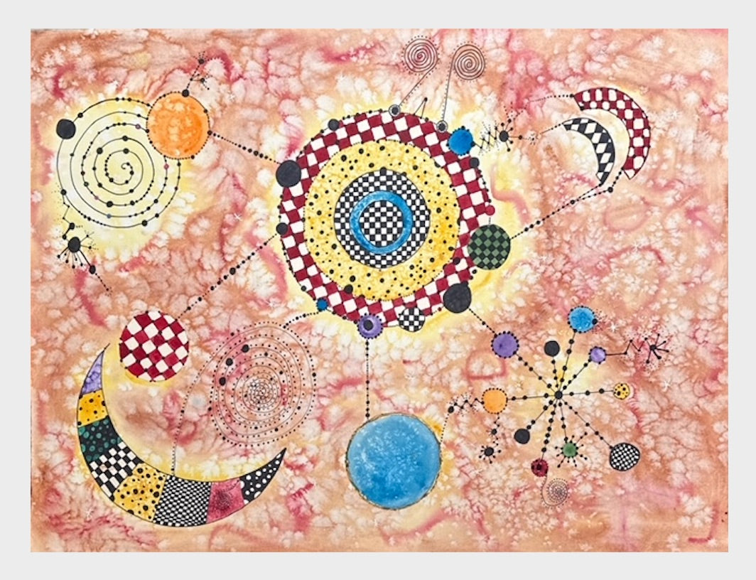 This piece was created in 1999 and Kierah added her creative part in 2025. The feel I get from this piece is; it wasn't time to go to someones home until Kierah was here to help us be a three generation collaborating Art Team: