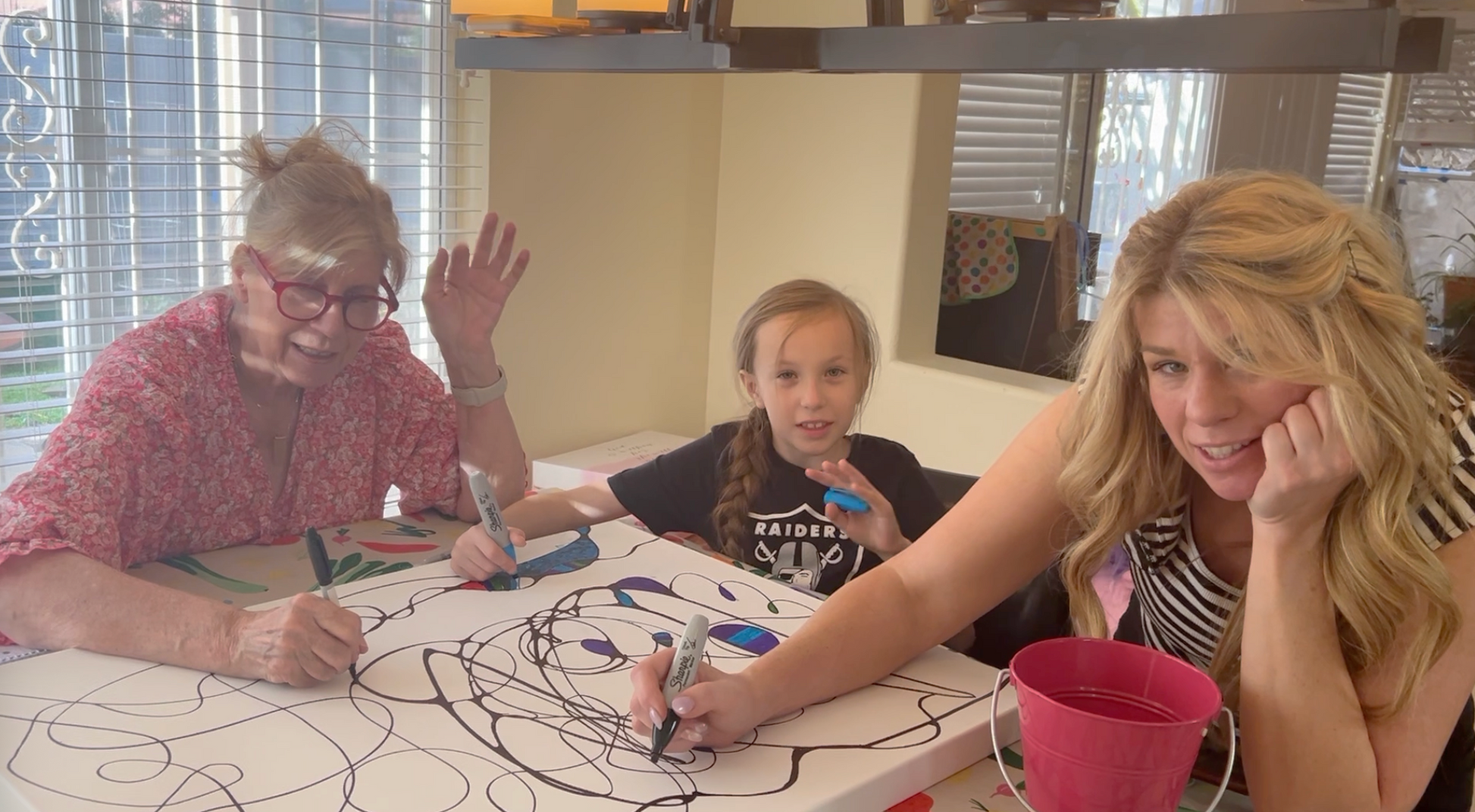 The flowing organic shapes, spirals, and vibrant colors represent more than abstract beauty - they symbolize the intertwining of three lives, three artistic voices, and three generations of creative DNA flowing together. Each brushstroke carries the wisdom of Grammy Clarissa, the strength of mother Vanessa, and the pure joy of young artist Kierah, creating a visual symphony of family love.